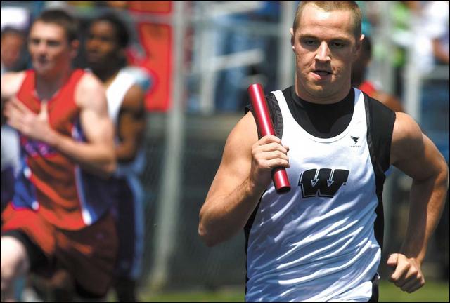 ON THE FAST TRACK: Western senior Trent Lawlyes runs in the medley relay during the 85th Kokomo Relays on Saturday at Walter Cross Field. Western finished fourth in the event. Later, Lawlyes helped the Panthers win the shuttle hurdles relay. KT photo