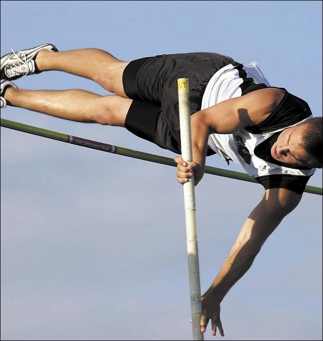 UP AND OVER :Western senior Dean Shepherd clears the bar in the pole vault competition during the Kokomo Sectional on Thursday night at Walter Cross Field. Shepherd took third place with a vault of 14-3 and teammate Chris Harter took first with a vault of 15-0, helping the Panthers repeat as team champions.