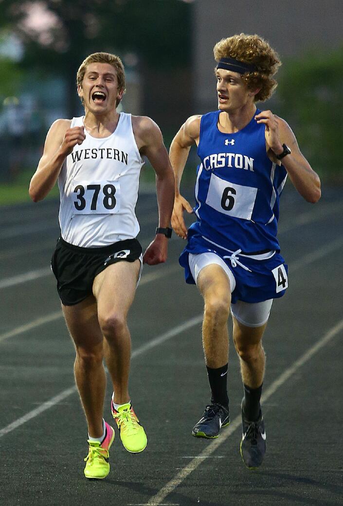MOVING AHEAD: Western’s Josh Everetts moves past Caston’s Mitchell Rans near the finish line in the 3,200 at the Kokomo Regional. Everetts took third in the event and won the 1,600. He’ll race in both events in today’s track and field state championships at Indiana University in Bloomington. Two are back from last year, one is returning for the first time since 2014, and another is making his first trip to the IHSAA Boys Track and Field State Championships. It's a mixed bag of talent and a range of emotions racing through the heads and hearts of the four KT-area athletes converging at Robert C. Haugh Track and Field Complex at Indiana University in Bloomington today, with field events slated to begin at 3 p.m. Eastern junior pole vaulter Aren Turner called his first trip to Bloomington exhilarating, a mix of excitement and nerves that he's sure will eventually set in. "It hasn't hit me yet," Turner said Wednesday. "I'm sure it will once I get on the track and start warming up." Western junior thrower Tyler Gilbert says he is trying to remain calm and collected in his return trip to state after a 12th-place finish with a 154-foot discus toss last season. Peru senior jumper Jonah Lester, who finished 17th with a 6-foot-2 high jump last year, is set to compete in both the high and long jump. Despite a few nerves, he's feeling confident and capable. And Western senior distance runner Josh Everetts, well, he's just a little bit of everything, especially happy. "I'm fired up, hyped, excited," said Everetts. "I'm just going to go out there and give it my all. Right now it's a little overwhelming, to accomplish a lifetime goal." Everetts, who advanced to the championships as a freshman on the Panthers' 4x800 relay team, punched his ticket to the state's biggest track and field stage in a pair of individual Kokomo Regional events, blazing to a 4:21.2 win in last Tuesday's 1,600, while also advancing in the 3,200 with a third-place time of 9:43.48. He sits at seventh on the performance list in the 1,600 based on his regional run. "For me this is a dream come true," said Everetts, who has signed to run track and cross country at IUPUI next year. "This has been my goal since freshman year to go to state in an individual event. To go in two events, I'm just very humbled." Gilbert raised eyebrows with a record-setting Kokomo Sectional discus toss of 177-01. He'll carry that momentum into today's championships, where he's no longer an underdog and will have plenty of eyes focused in his direction. "Last year I was seeded 26th and I wasn't really worried, I didn't have anything to lose going in," Gilbert said. "I'm going to try to go in with the same mindset and try to stay calm. I usually end up doing better that way." Gilbert is slated at fifth on the performance chart in the discus based on his first-place regional toss of 167-10. His sectional toss is better than top seed Logan Calvin of Bloomington North (173-01). "I'm just going to try and stay consistent and maybe get a PR," Gilbert said. "A big part of it is the weather and the weather I think should actually be pretty decent. At the beginning of the year I wanted to finish top-five. I still do. Top five would be nice." Lester, a Bethel College recruit, surprised even himself when he snuck into state with a 21-08.25 first-place regional long jump. "It's exciting, I've only been doing long jump for a year," Lester said. In his main event, the high jump, Lester was runner-up with a 6-04 in the regional, placing him in a nine-way tie for seventh on the state performance list. He's hoping last year's state experience carries over to a podium finish this time around. "I got some good experience but didn't perform the way I wanted to," Lester said. "I'm shooting for a top-five finish but at least top-ten is the hope. "Just the whole experience is exciting," Lester added. "It's senior year and I feel like I've got nothing to lose. I'm confident. There's some nerves but I think they'll go away once we get there and scope it out." For Eastern's Turner, the idea of competing at state wasn't even on his radar at the start of the season. "I was just trying to set new PRs," Turner said. "I wasn't thinking about state until I found out I'd made it." Turner vaulted to a second-place finish of 11-feet, 6 inches at the Kokomo Sectional and then cleared 13-3 for a second-place finish at the Kokomo Regional. He sits at 24th on the performance list but is within six inches of 11 other vaulters. He's also upgraded from his 13-1/2 foot pole, and he's enjoying the difference. "We borrowed a pole from Western, a 15-foot pole," Turner said, "and I've been getting up to heights I've never seen before. I'm getting up to around 15 feet. "It would be real nice to be on podium," Turner aded. "Top-eight would be awesome and I think that's doable but it wouldn't be the end of the world if I ended up dead last. It's just awesome to be able to go down there." Everetts is looking forward to the IU track, where he'll add the final paces to a successful high school career. "I think that A, it's fast, and B, it's beautiful," Everetts said. "It's just a phenomenal facility." "I'm just honored, privileged and humbled," Everetts added. "I wouldn't be here without my friends, family, coaches and teammates." |